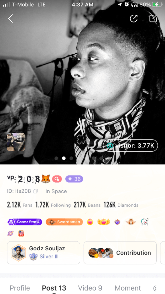 This is what my Bigo profile looks like incase you are curious. My name is its208 on the app. I enter singing competitions and perform music live. Other times I will have a conversation with you. Anyways, see you guys at my next LIVE.